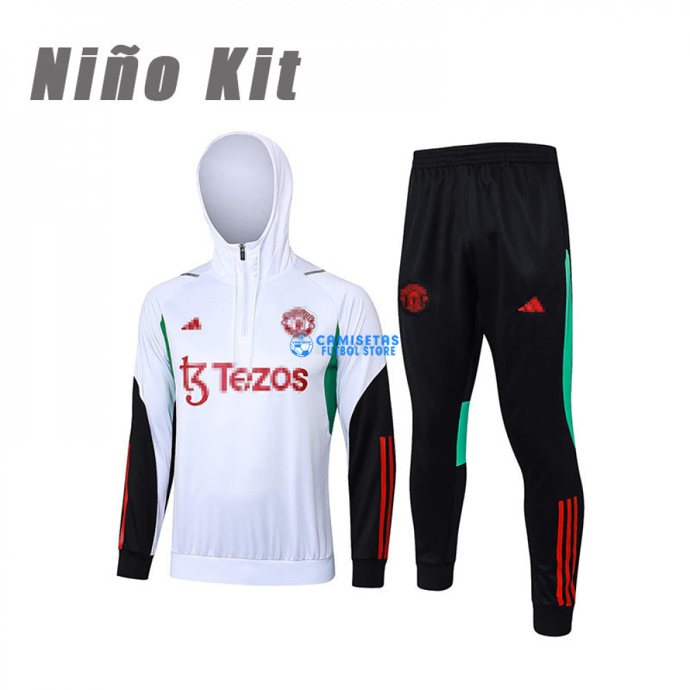 Sudadera De Entrenamiento Manchester United 2023/2024 Con Capucha Niño Kit Blanco/Negro
